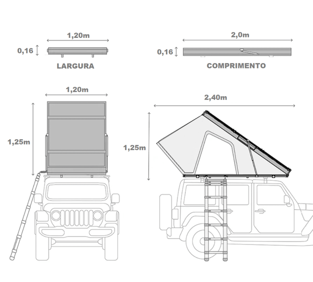 Transporte: Rack no tetor e teto rígido texturizado que permite carregar equipamentos extras.
