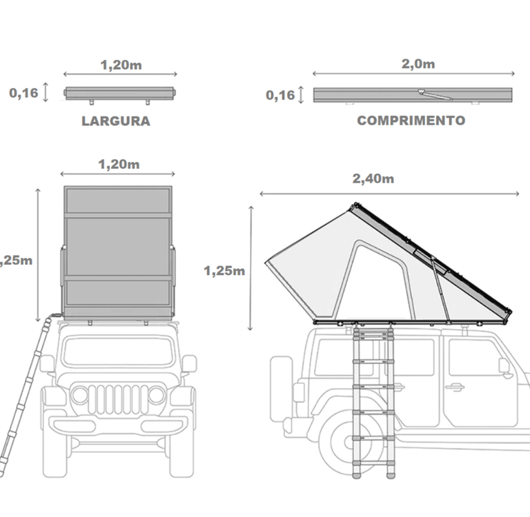 Dimensões (Fechada): Comprimento: 2,00m x Largura: 1,20m x Altura: 0,16m — Perfil ultra slim.