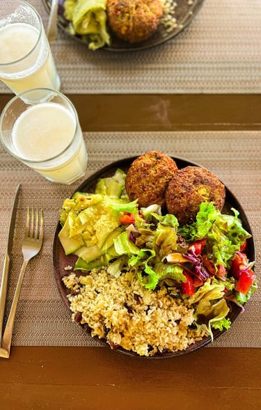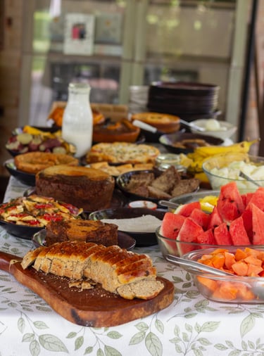 As refeições são um capítulo à parte: a diária inclui café da manhã, almoço e jantar, com uma chef que prepara pratos incríveis, inclusive vegetarianos e veganos.