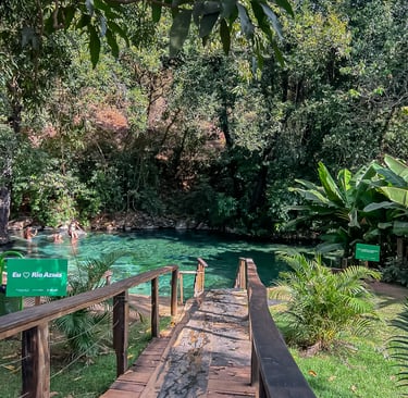 Vale muito a pena ir até a nascente do Rio Azuis. É onde a cor da água fica ainda mais vibrante e você consegue sentir a energia desse lugar único.