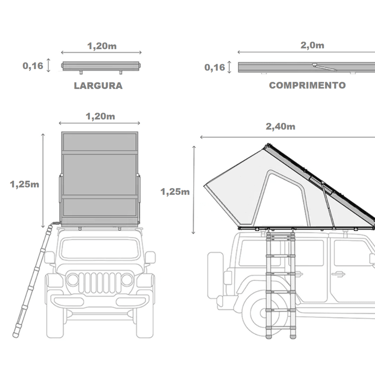 Transporte: Rack no tetor e teto rígido texturizado que permite carregar equipamentos extras.