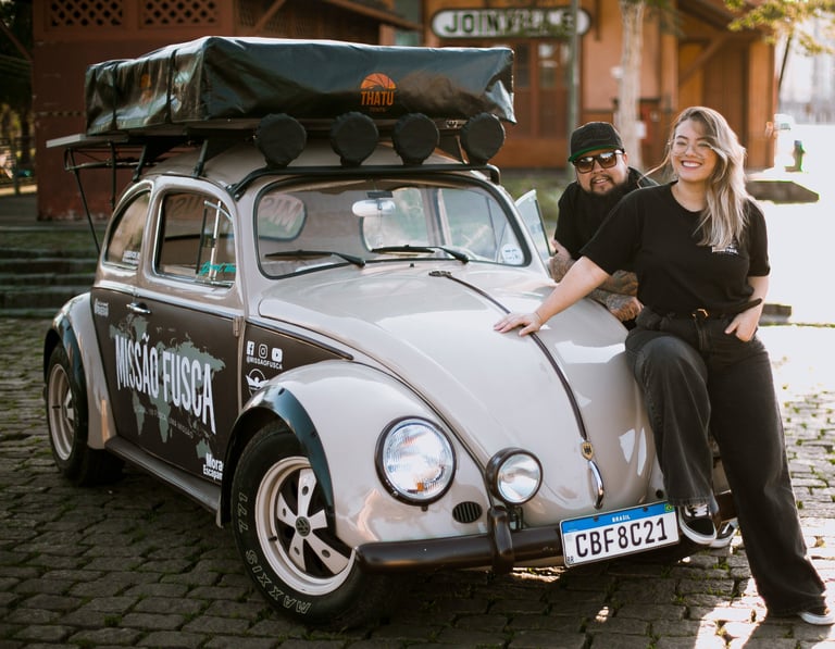 Muita gente acha que foi do dia para o noite, mas foram dois anos sonhando com uma vida num Fusca. Vendemos tudo o que nos prendia em Joinville, mudamos de profissão, simplificamos a vida e decidimos que o nosso lar seria onde a gente estacionasse a Dona Francisca e foi assim por quatro anos. Quando finalmente pegamos a estrada, não estávamos só viajando; estávamos furando uma bolha que disseram que a gente tinha que viver.